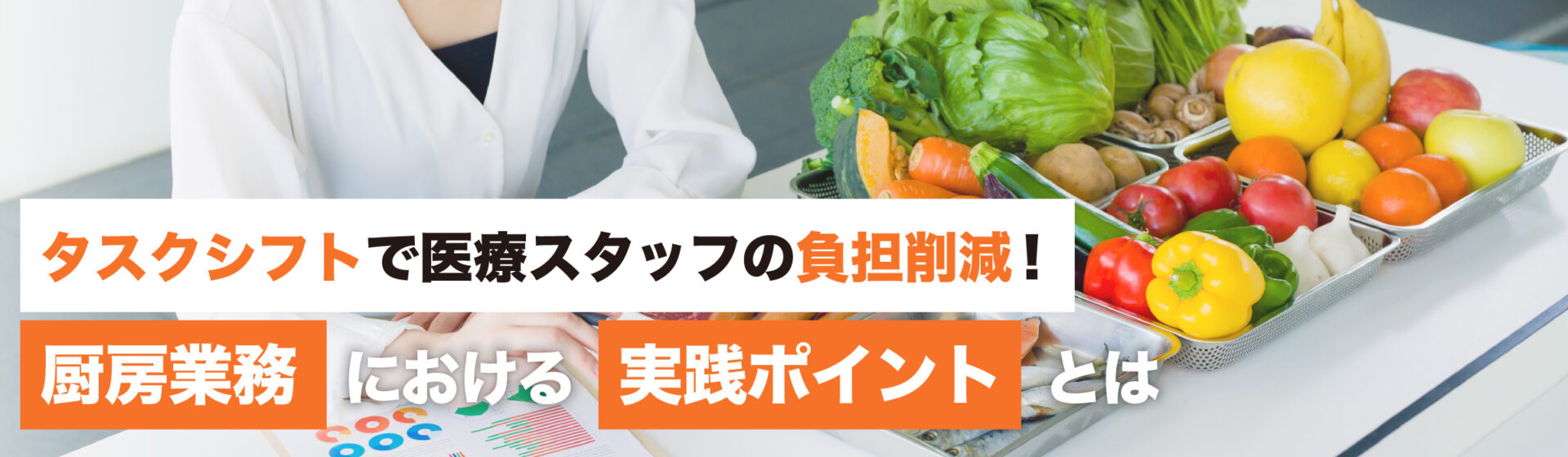 給食を提供する病院や介護福祉施設では、厨房業務のタスクシフトも必要かもしれません。給食管理業務を行う管理栄養士・栄養士は人員が限られていますが、栄養管理業務を行う医療スタッフとしての重要な役割もあります。患者や利用者をより丁寧にケアするために、タスクシフトによって業務量や労働環境を調整するメリットは大きいといえるでしょう。