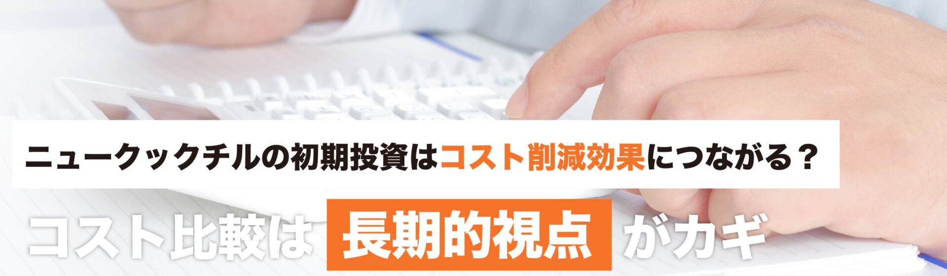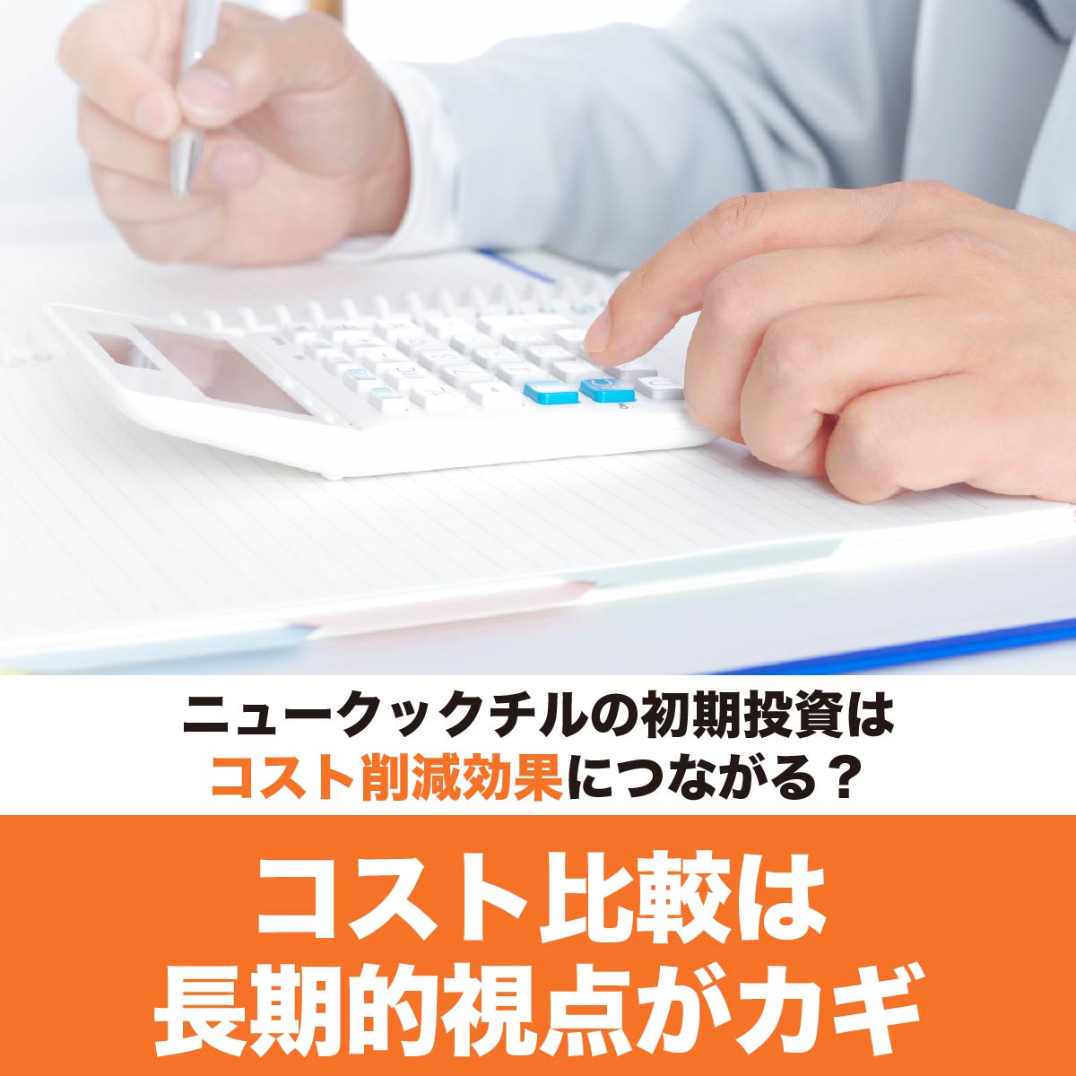 ニュークックチルは初期投資が主に負担になりますが、環境によって異なる場合があるほか、見落としがちなコストもあります。全体的なコスト分析を行い、隅々まで把握することが大切です。