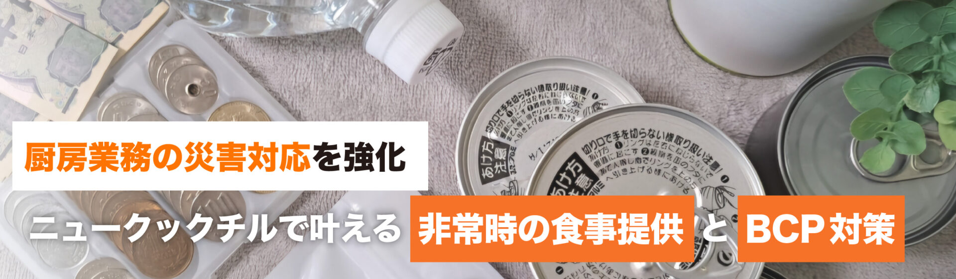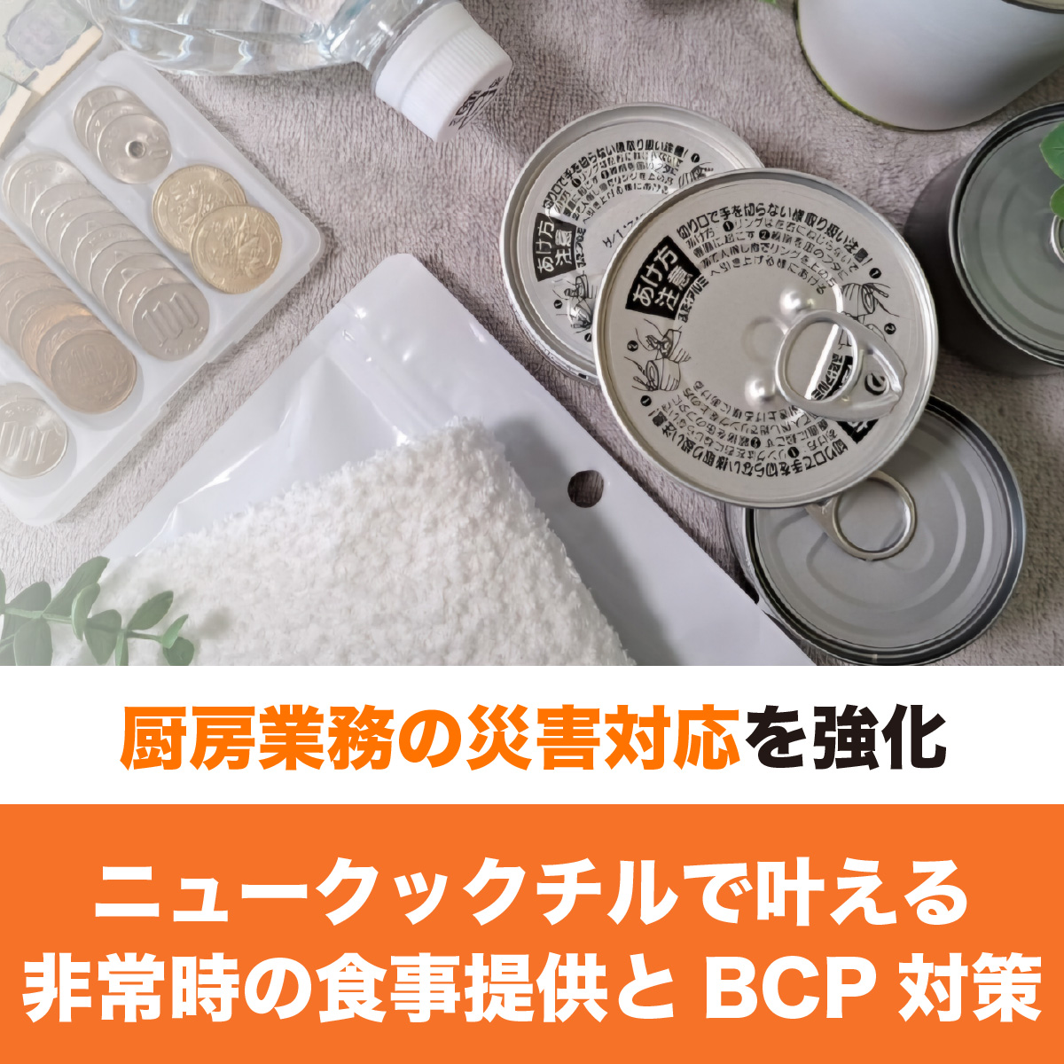 地震や停電などの災害時、病院や介護施設にとって「食事を止めないこと」は命を守る責務です。厨房業務の災害対応を考えるうえで欠かせないのが、BCP(事業継続計画)の整備と、非常時の食事提供体制の構築です。今回は、備蓄食・冷蔵食の活用方法や、災害時にも柔軟に対応できるニュークックチルのしくみを紹介します。もしもの時にも、安心して食事を届けられる「止まらない厨房づくり」を目指す施設さまはぜひチェックしてください。