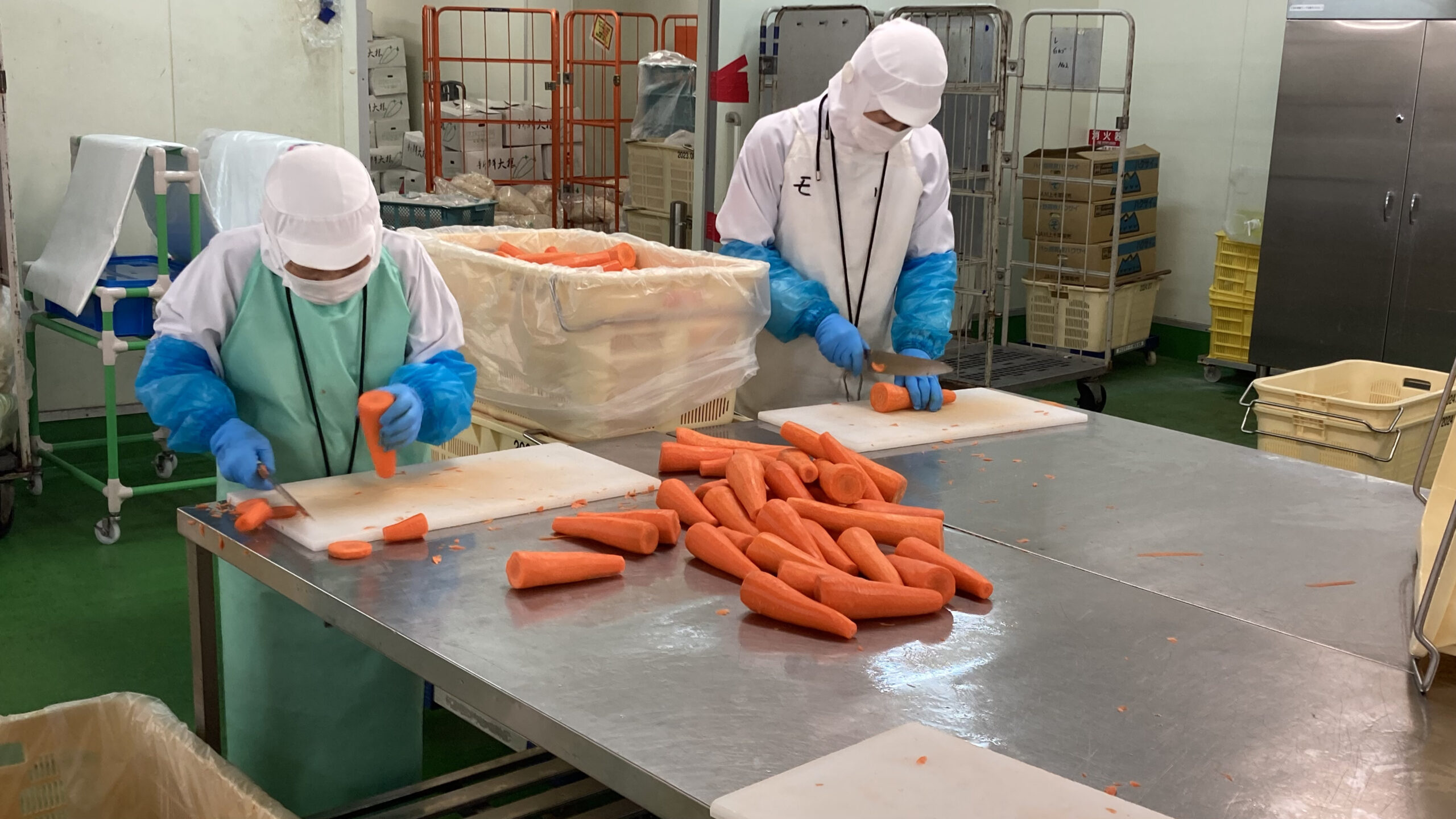 大阪工場はナリコマで最も歴史が長く、毎日3万4000食以上を製造する大規模な工場です。強みは、経験豊富な人材が揃っていること。そして、独自に「人材企画課」を設け、受け入れ体制や教育、フォローの仕組みを整えている点です。入社初日の工場見学やオリエンテーション、3か月後の面談まで、安心してスタートできる環境をつくっています。