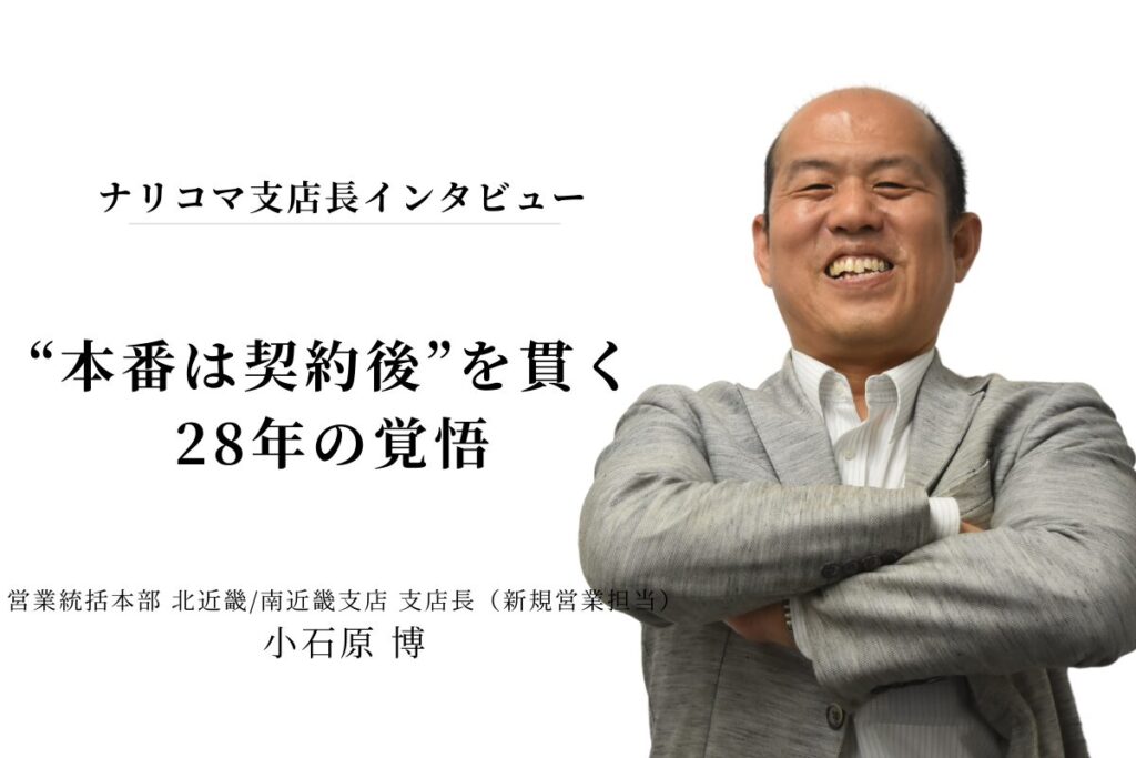 はじめまして、神戸工場長の松尾です。私がナリコマに入ったきっかけは、通勤路でいつも見ていた“青いビル”でした。最初はただのパート入社でしたが、一度退職した際にも当時の工場長が「どうせ松尾君は戻ってくる」とロッカーを空けて待ってくれていたんです。その縁もあり、気づけば20年、今では工場長を任されています。