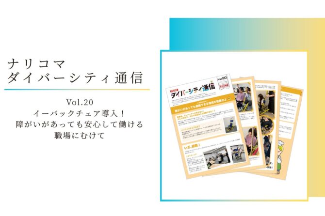 従業員に対し、ダイバーシティに関する情報を季刊(1月、4月、7月、10月)発行しています。ナリコマの「ダイバーシティ推進目標や取り組み」のほか、「ナリコマのDE&Iとは」や「育児や男性育休、介護関連のアンケート結果」なども取り上げています。今後もさまざまなテーマについて紹介していきます。