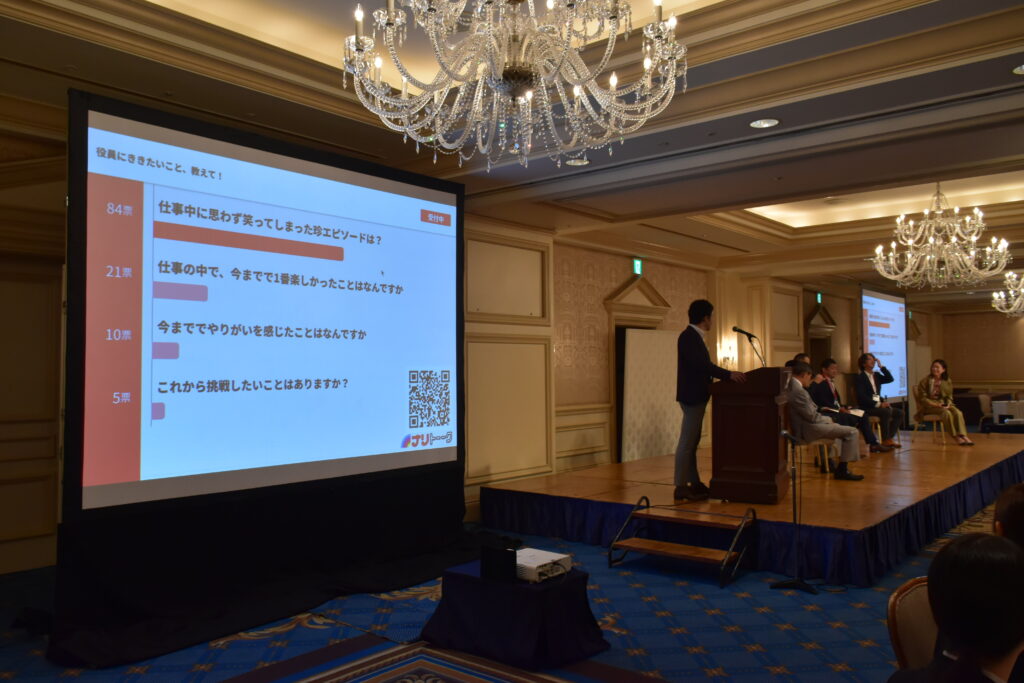 今年はリアルタイムアンケートを使ったトークセッションを実施。内定者からの質問に役員がその場で答える双方向スタイルで、笑いも交えながら本音トークが繰り広げられました。