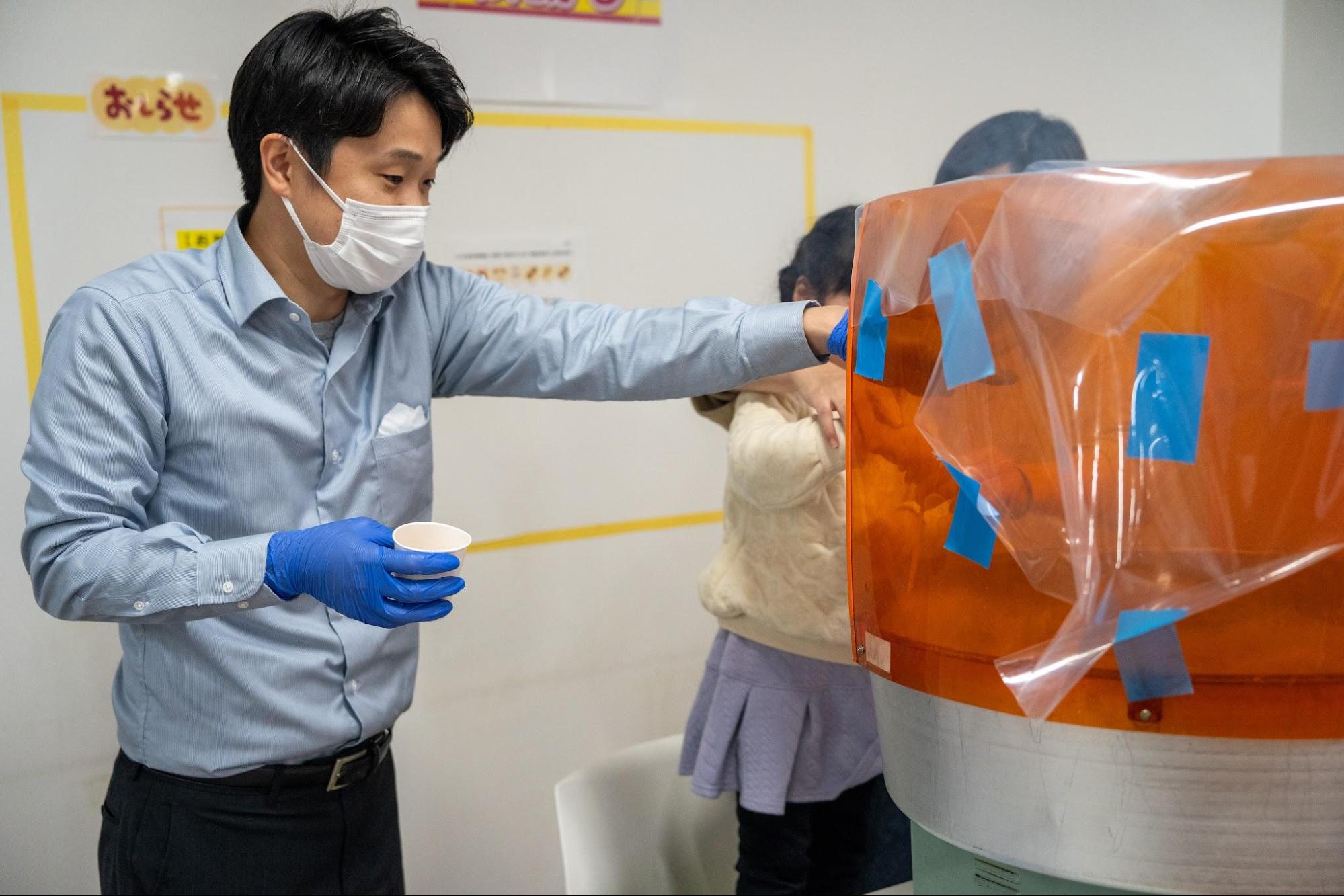 竹内工場長も率先して綿菓子作り体験をサポート。さすが元パティシエです!