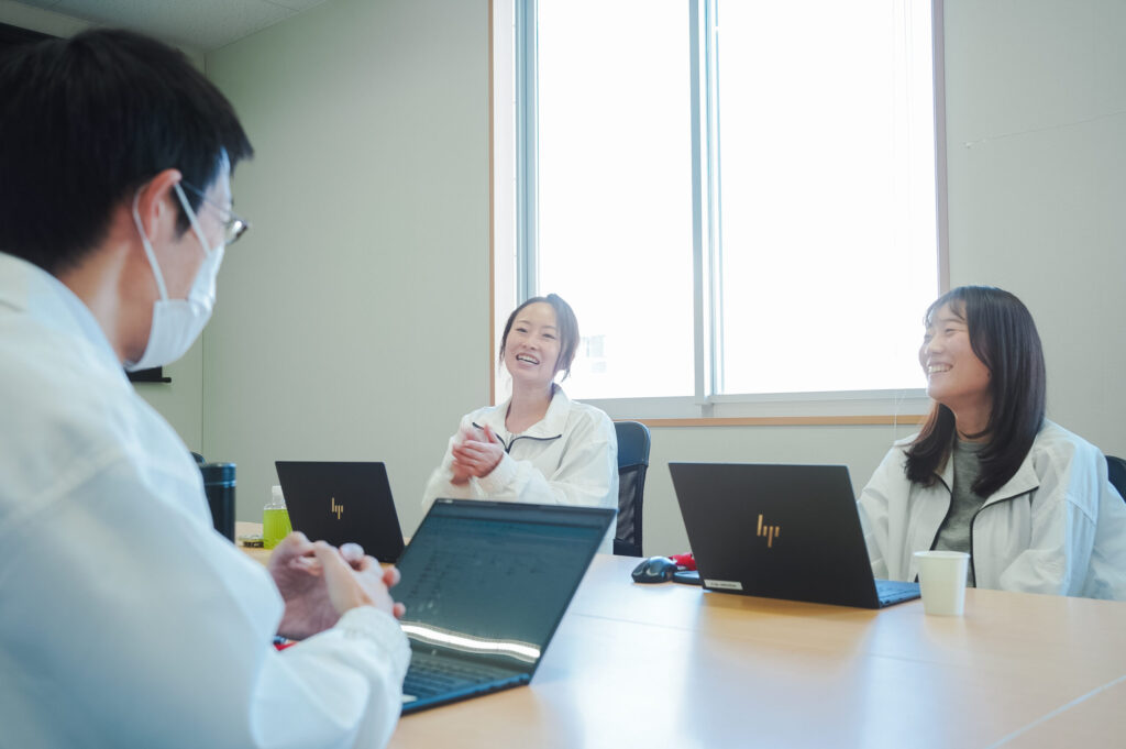 入ってみたら先輩がマンツーマンで丁寧に教えてくれるOJTはもちろんですが、部長や課長といった管理職の方にも、席で気軽に相談できる空気があるんです。「ちょっとここ教えてください〜」って。