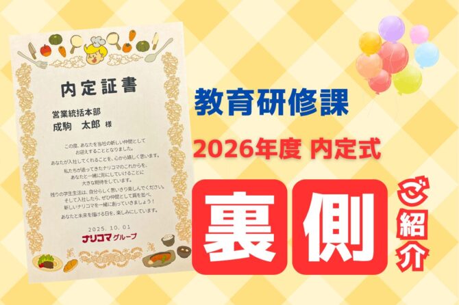 ナリコマの新人研修は、「主体的に考え、行動できる人材」を育成すべく、