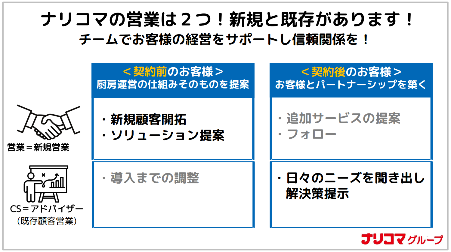 <補足:ナリコマの営業は新規と既存に明確に分かれています>