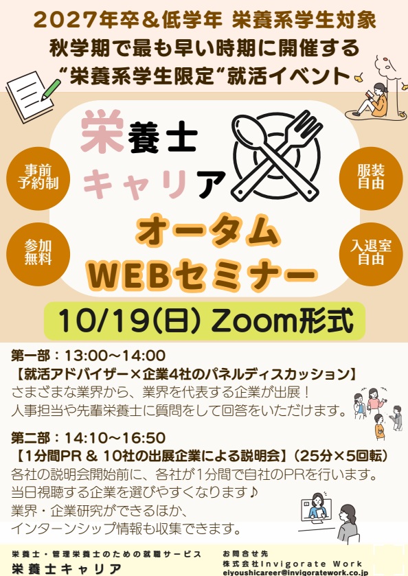 詳細はこちら → <栄養士キャリア オータムWEBセミナー>