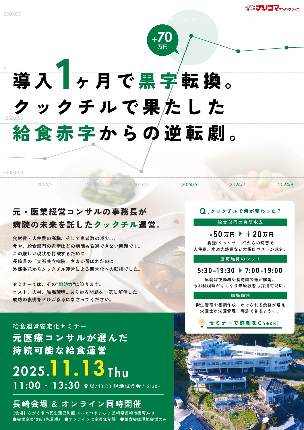 【現地:長崎/オンラインあり】導入1か月で黒字転換。クックチルで果たした給食赤字からの逆転劇。