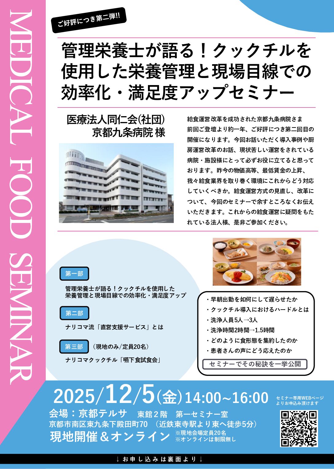 【京都九条病院さま登壇セミナー】管理栄養士が語る!クックチルを使用した栄養管理と現場目線での効率化・満足度アップセミナー
