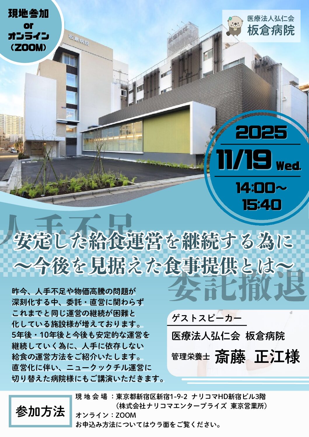 安定した給食運営を継続する為に ~今後を見据えた食事提供とは~ 板倉病院様ご登壇
