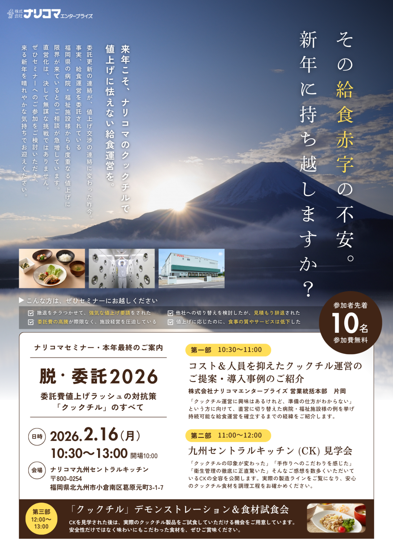 【現地のみ:福岡※九州CK】脱・委託2026 委託費値上げラッシュの対抗策「クックチル」のすべて