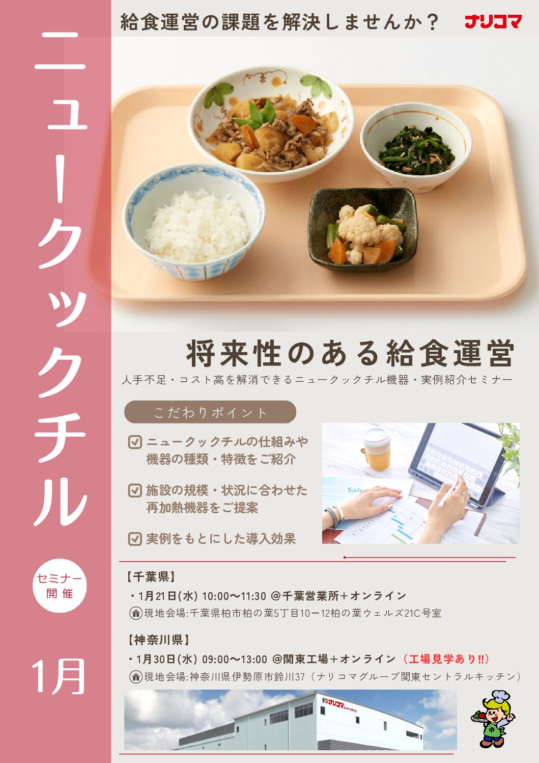 人手不足やコスト増にお悩みの病院・福祉施設の皆さまへ。ニュークックチルを活用した“これからの厨房運営”をテーマに、機器選定のコツや導入効果、調理デモ・試食まで体験いただける少人数制セミナーをご用意しました。未来を見据えた厨房改革の第一歩として、ぜひこの機会にご参加ください。