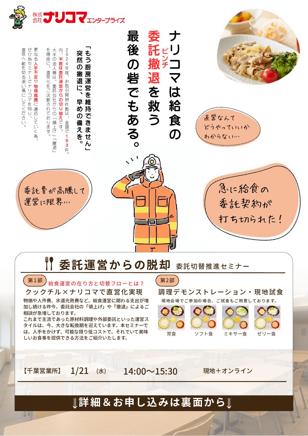 委託費高騰や突然の撤退、人手不足で「このままでは続けられない」とお感じの病院・福祉施設の皆さまへ。クックチル×ナリコマによる直営化の選択肢や切替フロー、実際の成功事例を、調理デモ・試食を交えながら具体的に学べる少人数制セミナーをご用意しました。これからの時代を生き抜く“攻めの厨房運営”を描く一歩として、ぜひご参加ください。